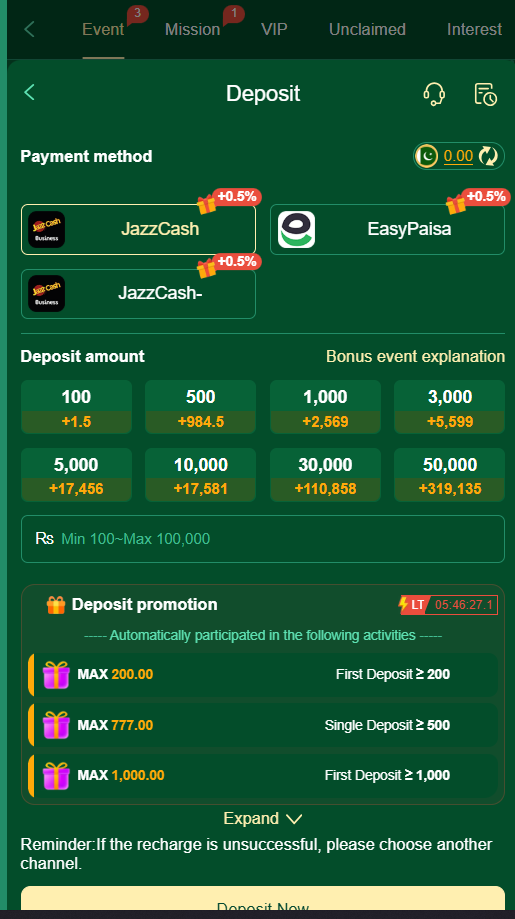 • Deposits: You can add funds via Easypaisa or JazzCash instantly. The minimum deposit is kept low so everyone can participate.